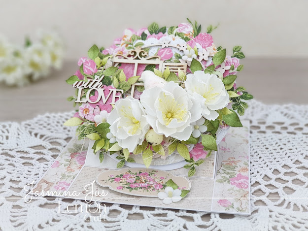 Today I'm sharing with you my latest inspiration for Lemoncraft. I have created a beautiful easel card, decorated with Sweet secrets papers and handmade foamiran flowers.