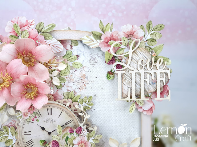 and decorated it with a lot of beautiful cut out paper elements. Added a few chipboards and my handmade foamiran flowers